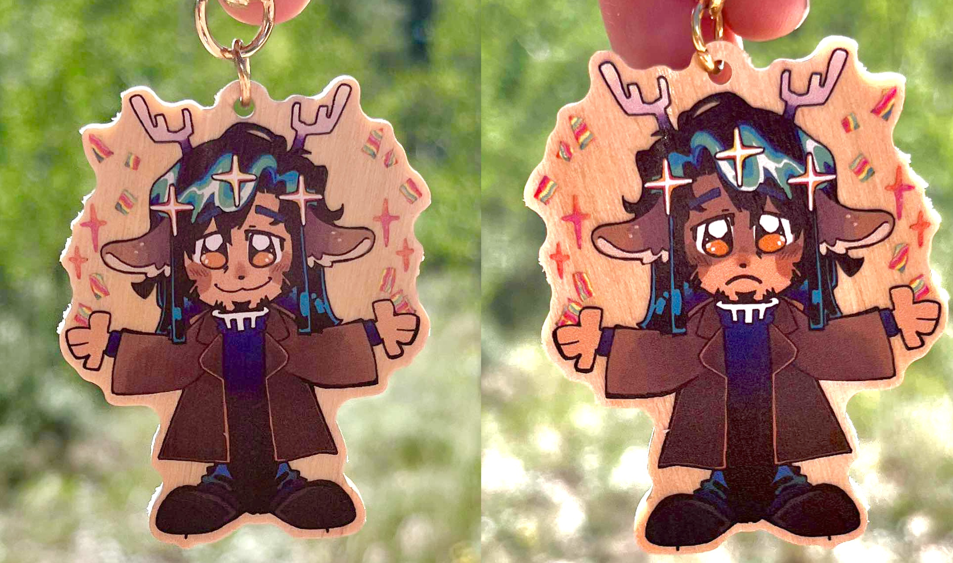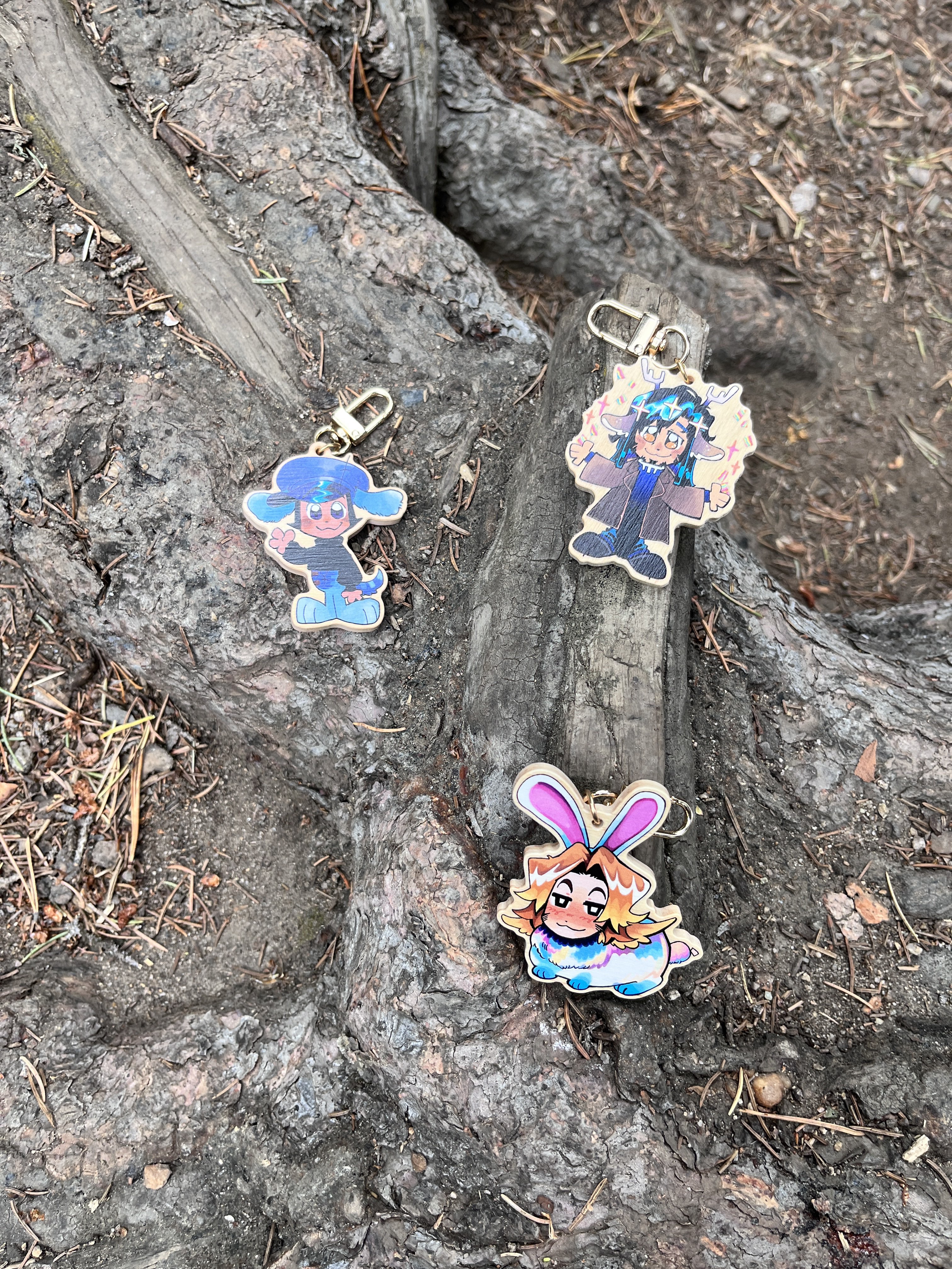 These charms will be 2.5''(63.5mm) in size, and the outside layer will be made of real wood, to give a nice charm to it. The wood is a nice pine color. These are great to put on backpacks, belt loops, or even to use as target practice 💥.